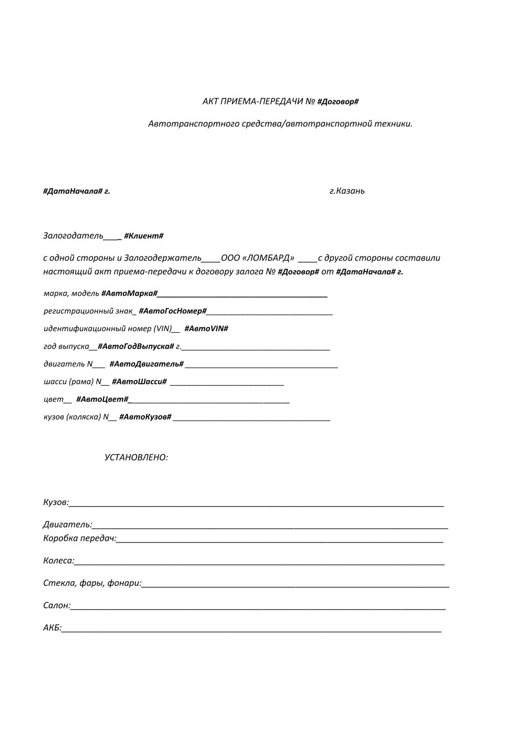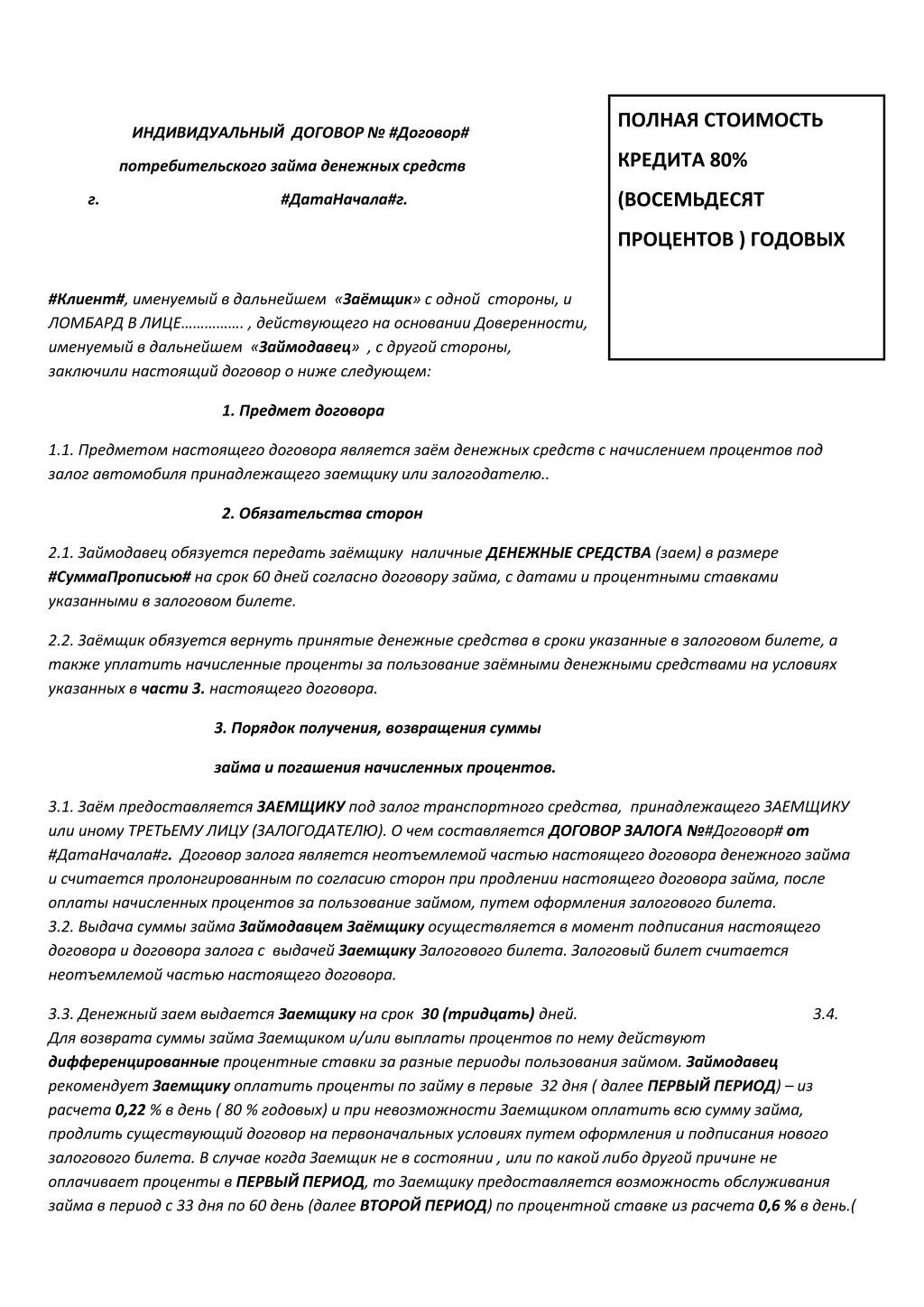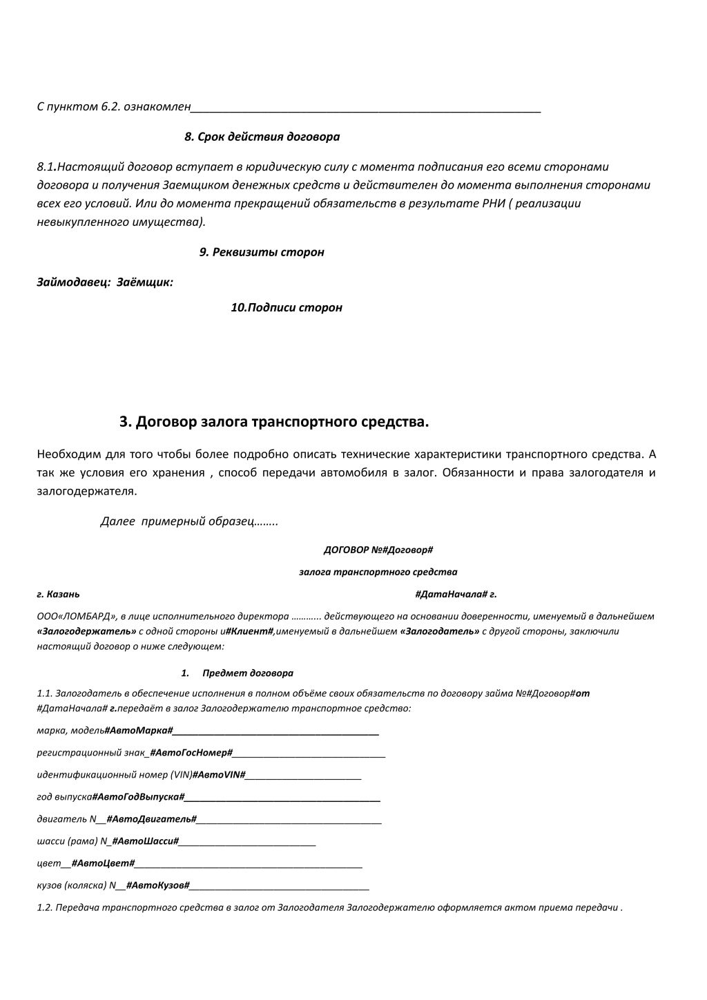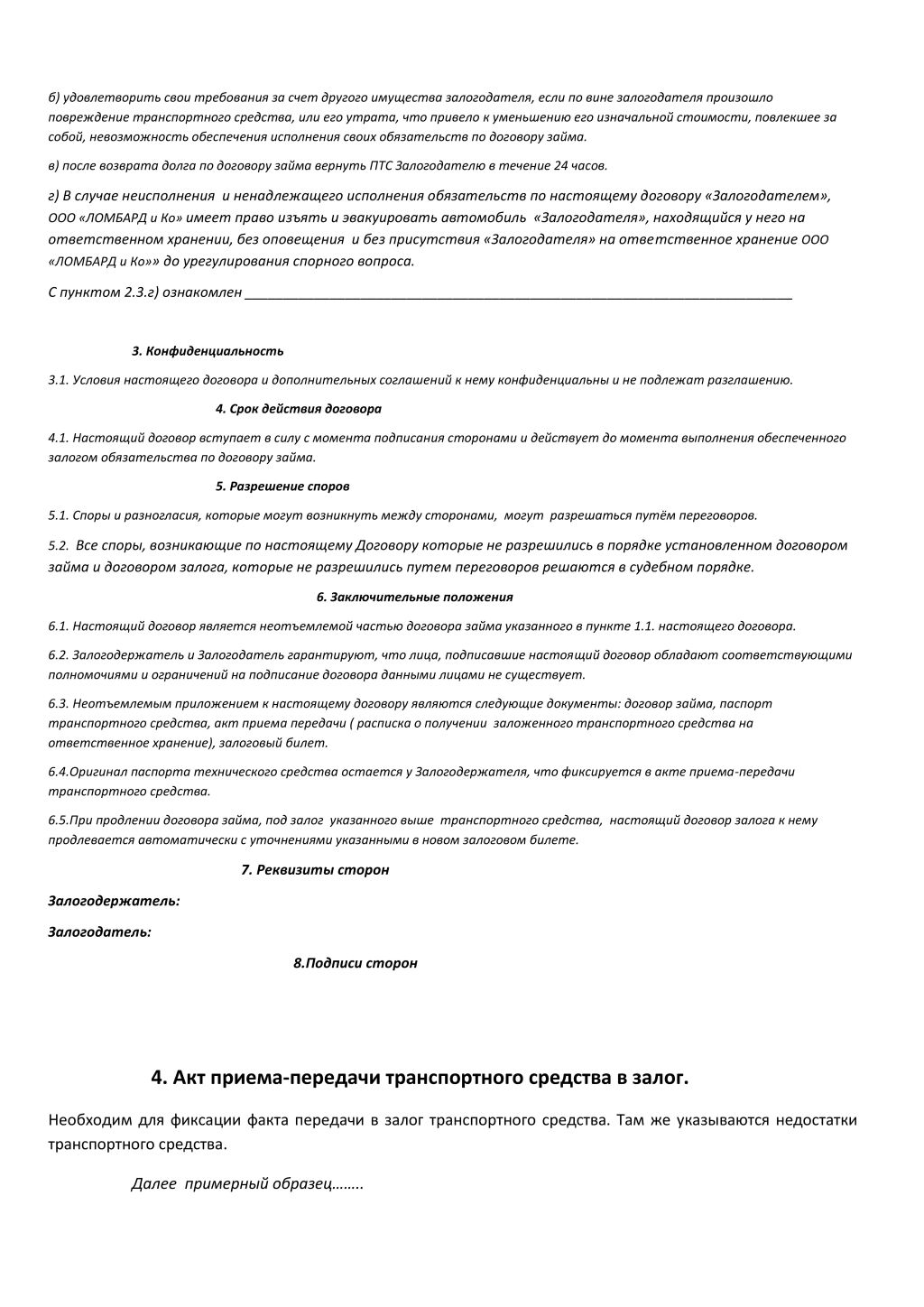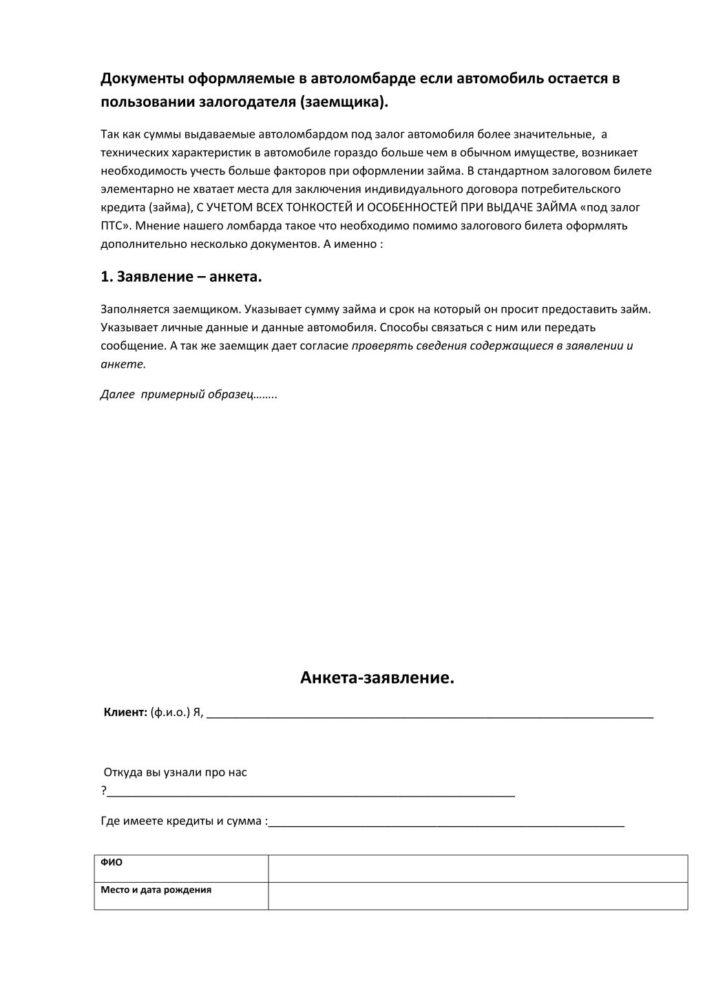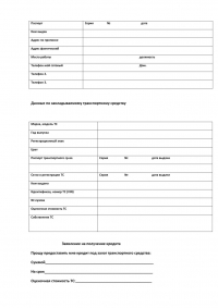 Документы оформляемые при получении краткосрочного займа под залог автомобиля.